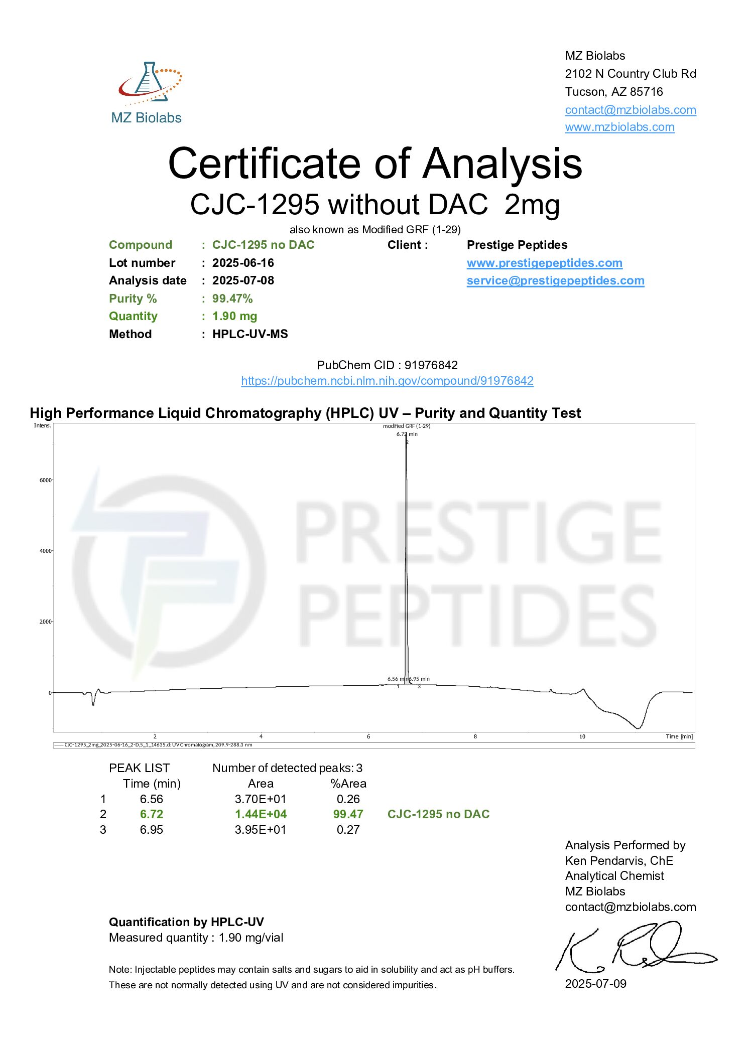 CJC-1295 No DAC 2MG (R&D)